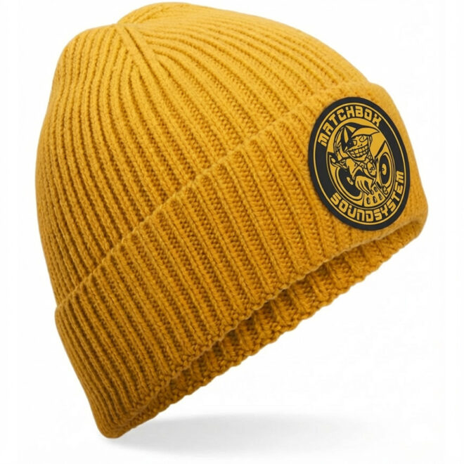 Matchbox Vintage Logo – Mustard – Beanie čepice kulatý patch